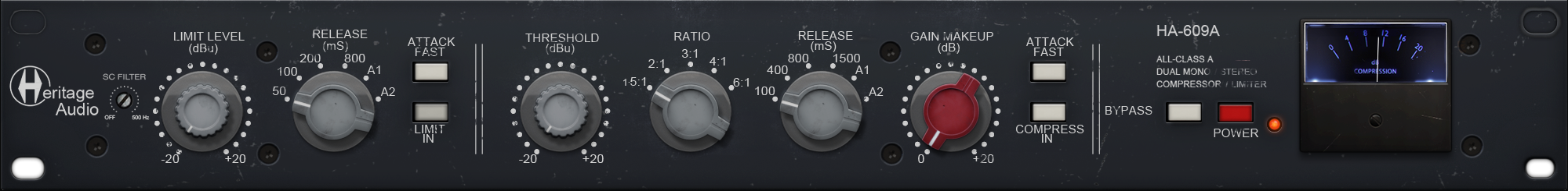 An entirely discrete Class A topology, three Carnhill St Ives transformers per channel, and the addition of a fast attack mode for both the compressor and limiter are just a few of the enhancements that helped elevate the HA-609A into a modern classic. The HA-609A Dual Mono/Stereo Compressor/Limiter plugin has been developed using current-generation component-level modelling, allowing every stage of the signal path, from gain reduction behaviour to harmonic response, to be captured with exceptional accuracy.